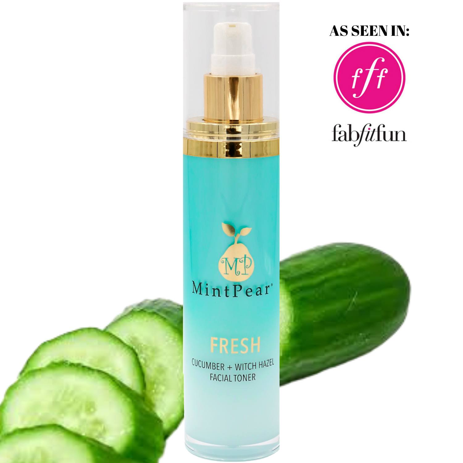 For a purely refreshing and totally cucumber experience, try MintPear's FRESH (Cucumber + Witch Hazel) Facial Toner – it’s like none other! Using only pure Cucumber Hydrosol, which smells exactly like a freshly cut cucumber (seriously!), this formula brings all the wonderful, age-old cucumber benefits: revitalizing, relaxing, rejuvenating - everything you want in a cucumber toner! Cucumber has numerous benefits for your skin, which is why it has become a staple for all things facials and spas. Cucumber works quickly to revitalize your skin and reduces puffiness caused by overtired skin and exhaustion. Cucumber also works as a natural moisturizer for your skin. It can help to hydrate your skin and prep your skin for moisturizers and serums to follow.